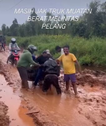 Pontianak Today – Unggahan video di akun Instagram @ketapangterkini menuai perhatian warganet. Unggahan tersebut memperlihatkan pengendara motor sulit melintas karena jalan tanah itu berlumpur. Kondisi kerusakan jalan diperparah akibat mobil bermuatan berat melintasi jalan tersebut.