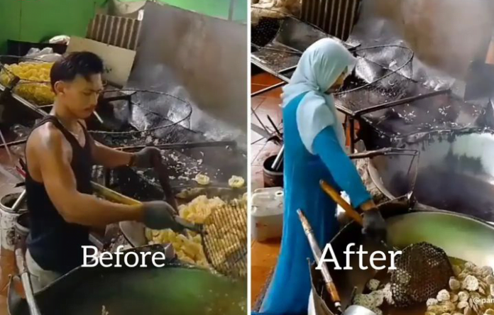 Dalam video singkat menunjukkan transisi pria ini saat menggoreng kerupuk dengan gaya berpakaian yang cukup mengejutkan.