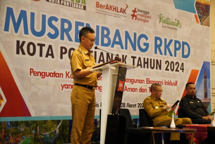 Hi!Pontianak – Wali Kota Pontianak Edi Rusdi Kamtono mengatakan penyusunan dokumen perencanaan Kota Pontianak tahun 2024, memprioritaskan penguatan ekonomi dan menjaga kondisi aman dan tertib di tahun politik. Dimana secara umum, ada empat poin yang menjadi tujuan pembangunan Kota Pontianak tahun 2024 sesuai Rencana Pembangunan Daeeah tahun 2024-2026.