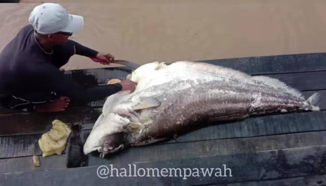 Dalam video yang diposting akun Instagram @hallomempawah, tampak bangkai ikan itu sudah diamankan warga di tepi sungai. Terlihat juga banyak warga yang berdatangan untuk melihat secara langsung ikan yang beratnya diperkirakan 150 kg itu.