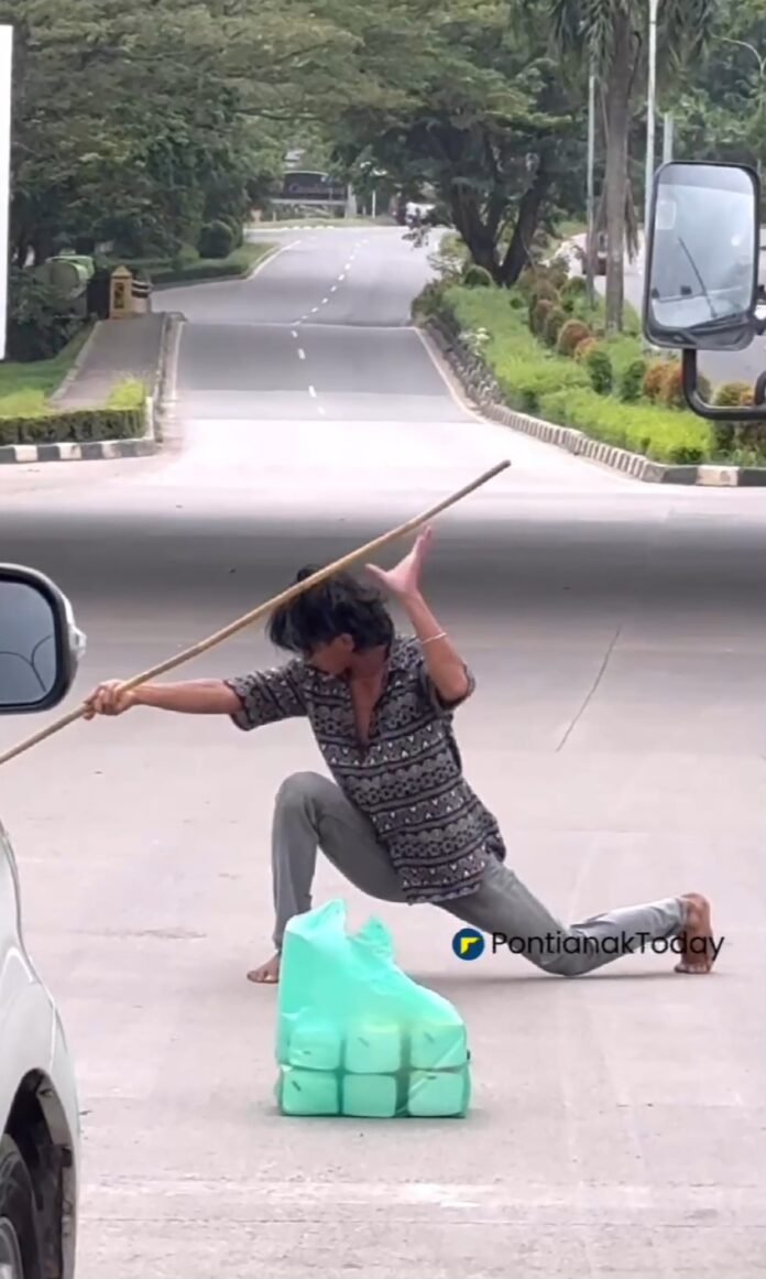 Kece, Penjual Tisu Ini Lakukan Atraksi Tongkat untuk Memikat Pembeli