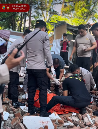 Dikutip dari akun Instagram @ditsamaptapoldasulut, terlihat para petugas mengevakuasi korban. Disebutkan, tim dari kepolisian bersama Basarnas bergerak cepat melakukan evakuasi di sejumlah titik terdampak gempa bermagnitudo 7,3 tersebut. Salah satu lokasi yang menjadi fokus penanganan berada di kawasan Gedung KONI Sario.