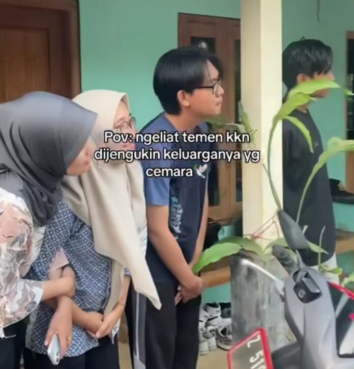 “Pov: ngeliat temen kkn dijengukin keluarganya yang cemara,” tulis keterangan dalam video tersebut.