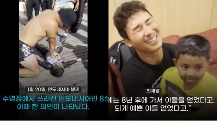 Bocah berusia 8 tahun itu tenggelam, kemudian Choi Jae Young (43) melakukan upaya pertolongan pertama dengan metode CPR selama 8 menit. Beruntung Choi memiliki sertifikat pertolongan pertama dan keselamatan di air yang ia pelajari di Korea.