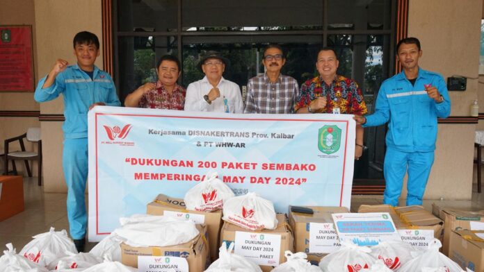Pontianak Today – Dalam memperingati Hari Buruh Internasional, PT Well Harvest Winning Alumina Refinery (“WHW”) melalui program Corporate Social Responsibility (CSR) menyalurkan bantuan 200 paket sembako kepada buruh yang distribusikan melalui Dinas Tenaga kerja dan Transmigrasi Provinsi Kalimantan Barat.