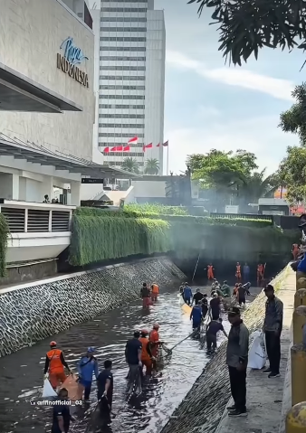 Pontianak Today – Suasana tak biasa terjadi di kawasan depan pusat perbelanjaan Plaza Indonesia, Jakarta, ketika sejumlah petugas terlihat turun langsung ke aliran kali untuk menangkap ikan sapu-sapu.