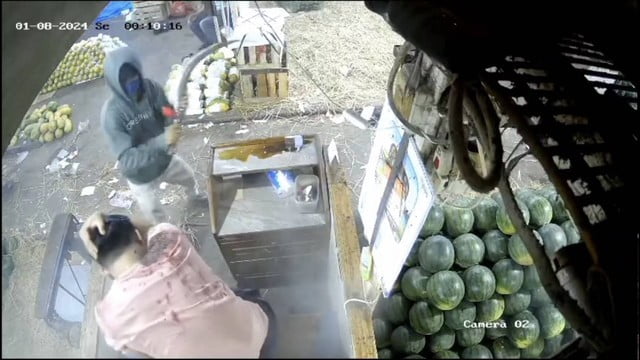 Dalam video yang beredar di media sosial, tampak korban sedang berada di kiosnya. Tiba-tiba datang seorang pria mengenakan jaket hijau dan penutup wajah menghampirinya. Pelaku kemudian menyiramkan sesuatu yang diduga air keras ke bagian wajah korban, terlihat ada kepulan asap setelahnya.