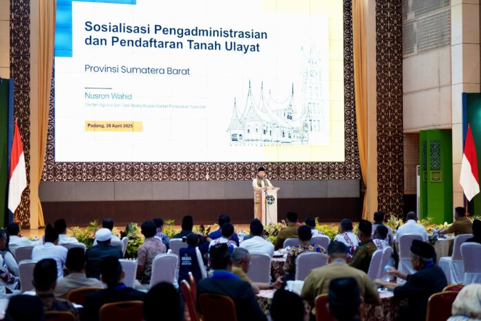 Pontianak Today – Menteri Agraria dan Tata Ruang/Kepala Badan Pertanahan Nasional (ATR/BPN), Nusron Wahid, menegaskan komitmen pemerintah untuk melindungi hak masyarakat hukum adat, khususnya terkait tanah ulayat. Pernyataan tersebut ia katakan saat membuka kegiatan Sosialisasi Pengadministrasian dan Pendaftaran Tanah Ulayat di Provinsi Sumatera Barat, yang digelar di Auditorium Universitas Negeri Padang, Senin, 28 April 2025.