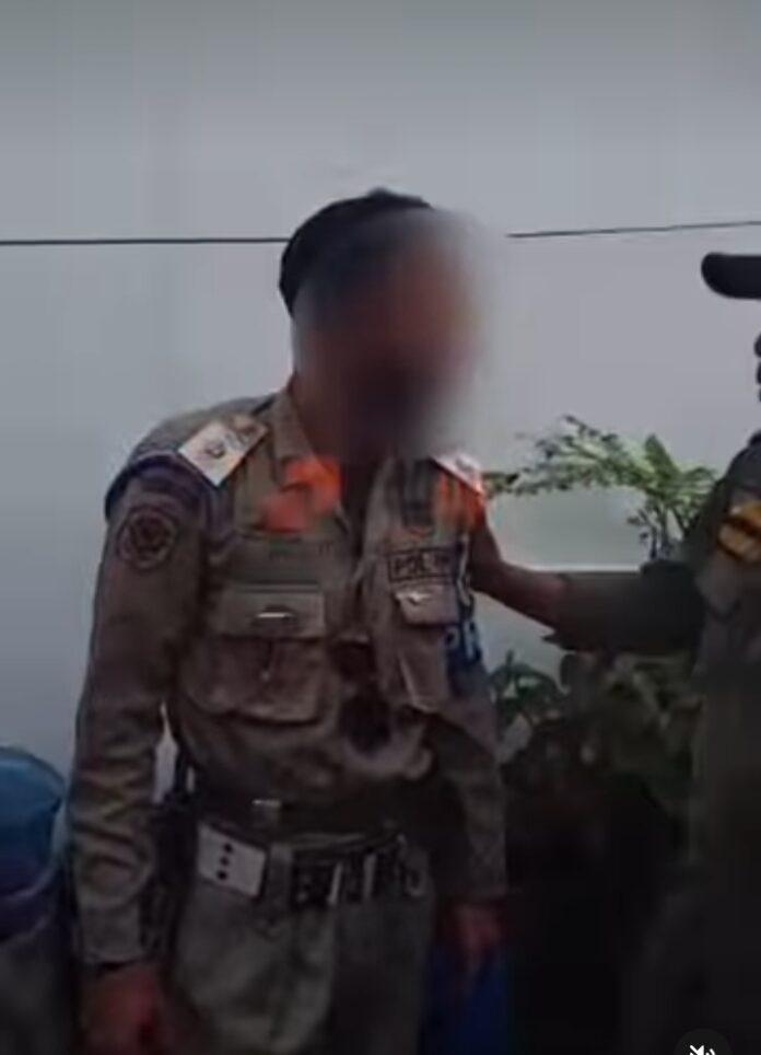 Dalam video yang dilihat Hi!Pontianak pada salah satu akun informasi di Instagram terlihat pria diamankan mengenakan seragam lengkap berwarna cokelat. Lengkap dengan pangkat dan tanda ‘patroli’.