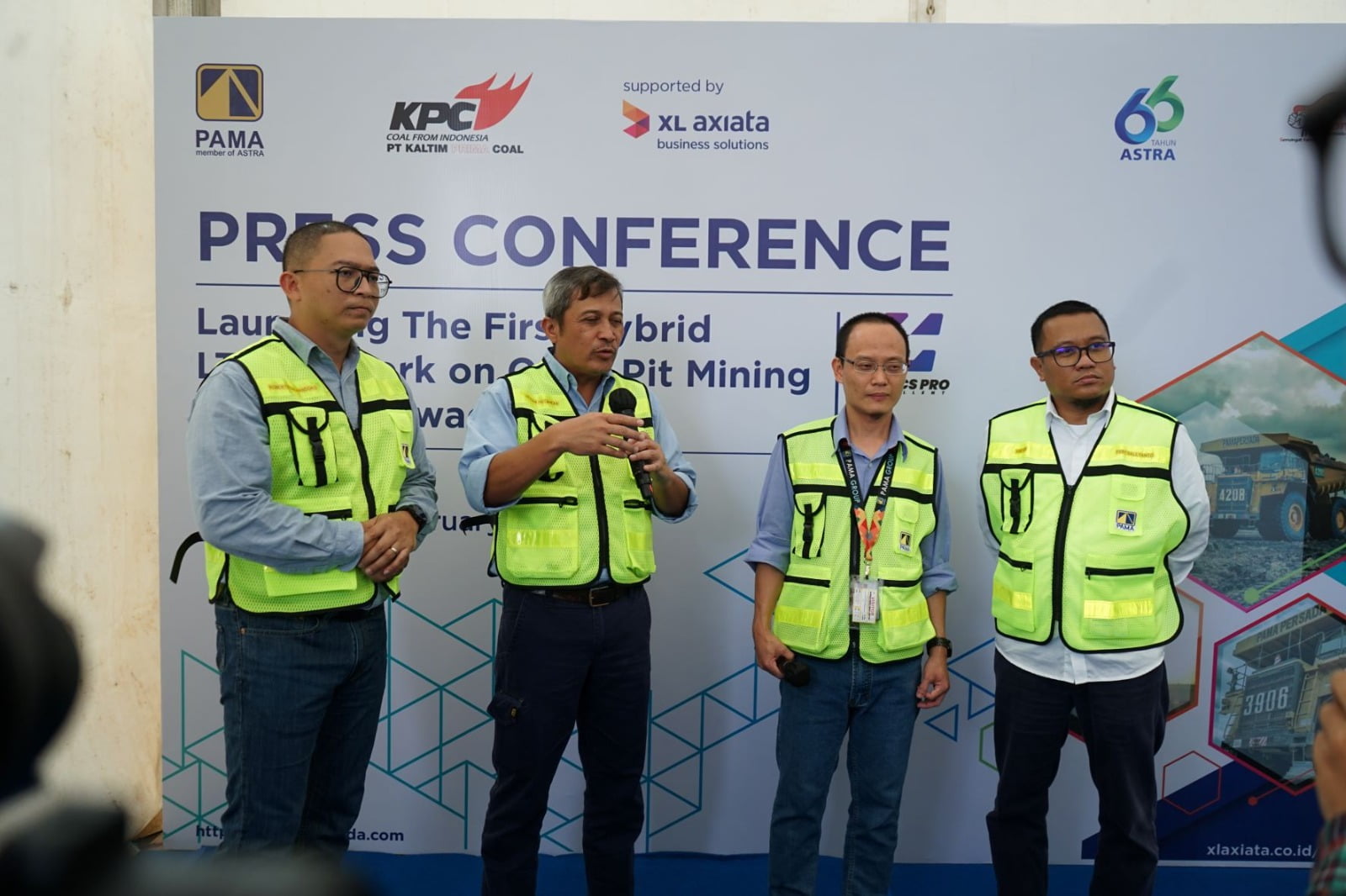 Seremoni Peluncuran “The First Hybrid LTE Network on Open Pit Mining & Go Live EWACSPRO” dihadiri oleh Vice President Director PT Pamapersada Nusantara, Hendra Hutahean, Chief Operating Officer PT Kaltim Prima Coal, Muhammad Rudy, Chief Enterprise & SME XL Axiata, Feby Sallyanto, dan Director Huawei Indonesia, Jimmy Christanthio di Sangatta, Kalimantan Timur pada Senin (20/2).